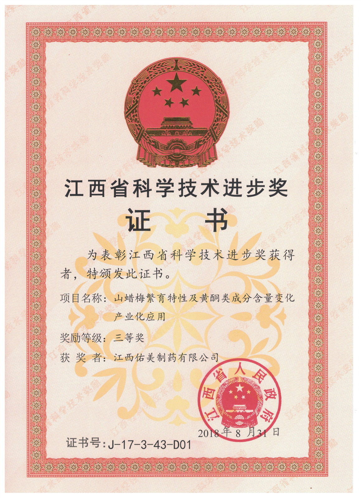 山蠟梅繁育特性及黃酮類成分含量變化產(chǎn)業(yè)化應(yīng)用——省科學(xué)技術(shù)進(jìn)步獎(jiǎng)三等獎(jiǎng)